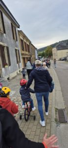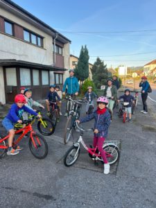 Tous les matins, les enfants démarraient à pied de l’Ancienne Gare de Lamorteau. Nous avons terminé la semaine par un départ en vélobus.