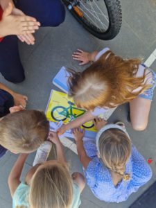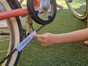 Les enfants ont vécu différentes activités enrichissantes : lecture de panneaux routiers, courses relais pour apprendre les mots de la dictée, vocabulaire autour du vélo, histoires sur le thème des moyens de locomotion, développement artistique etc.