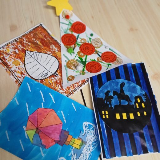 Une après-midi par semaine tous les enfants de maternelle se retrouvent pour des ateliers artistiques. Œuvres réalisées à partir d’un artiste, en fonction de la période…un moment créatif et de coopération entre petits et grands.